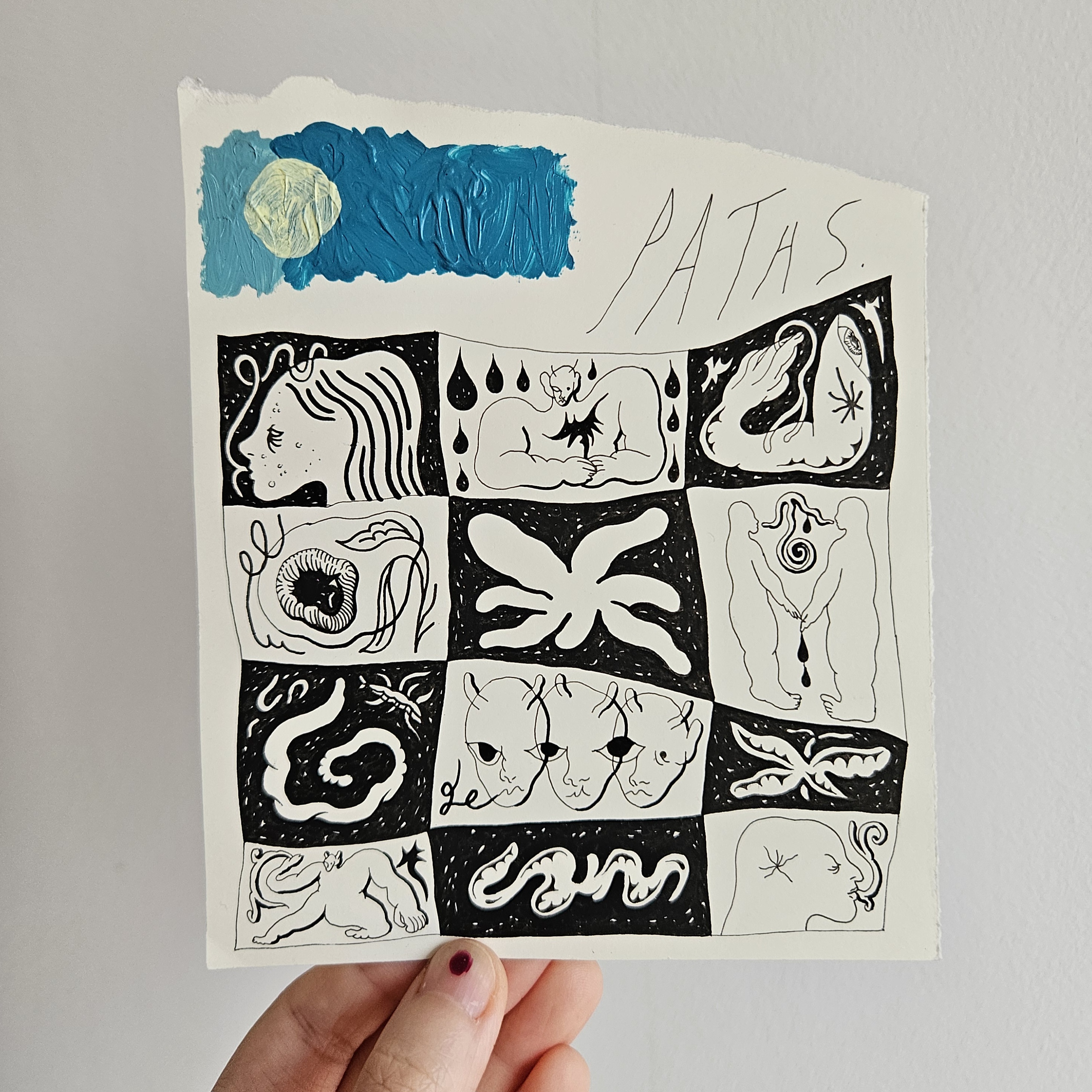 Original artwork done with pen and acrylic on 165 gsm paper.