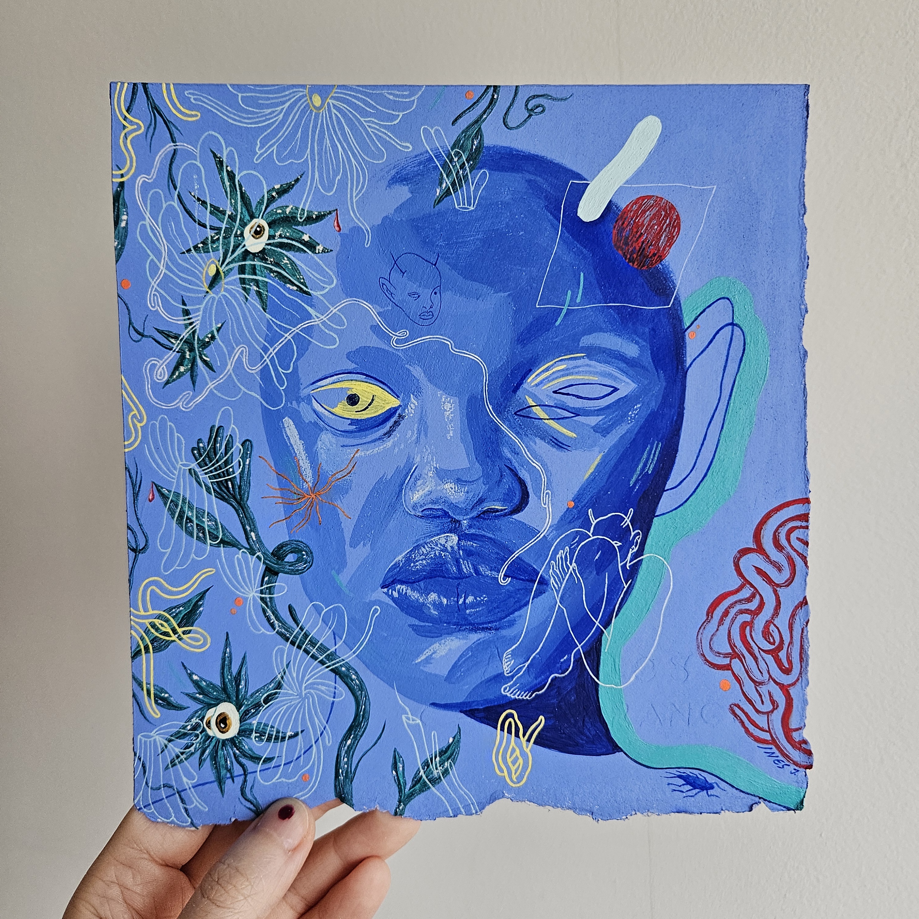 Original painting done with acrylic and acrylic gouache on 640 gsm cotton paper.
