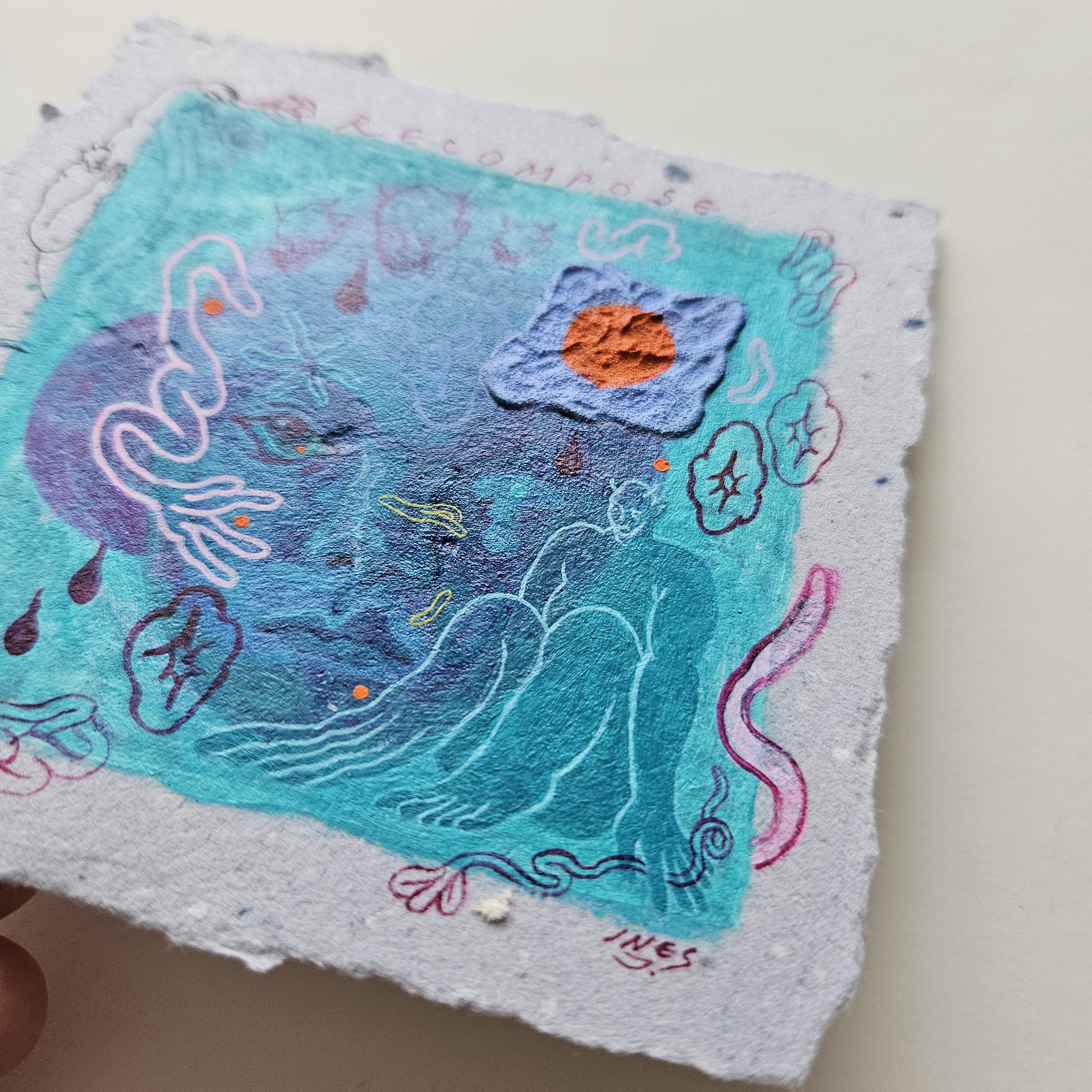 Original artwork done with acrylic & pen on handmade paper.