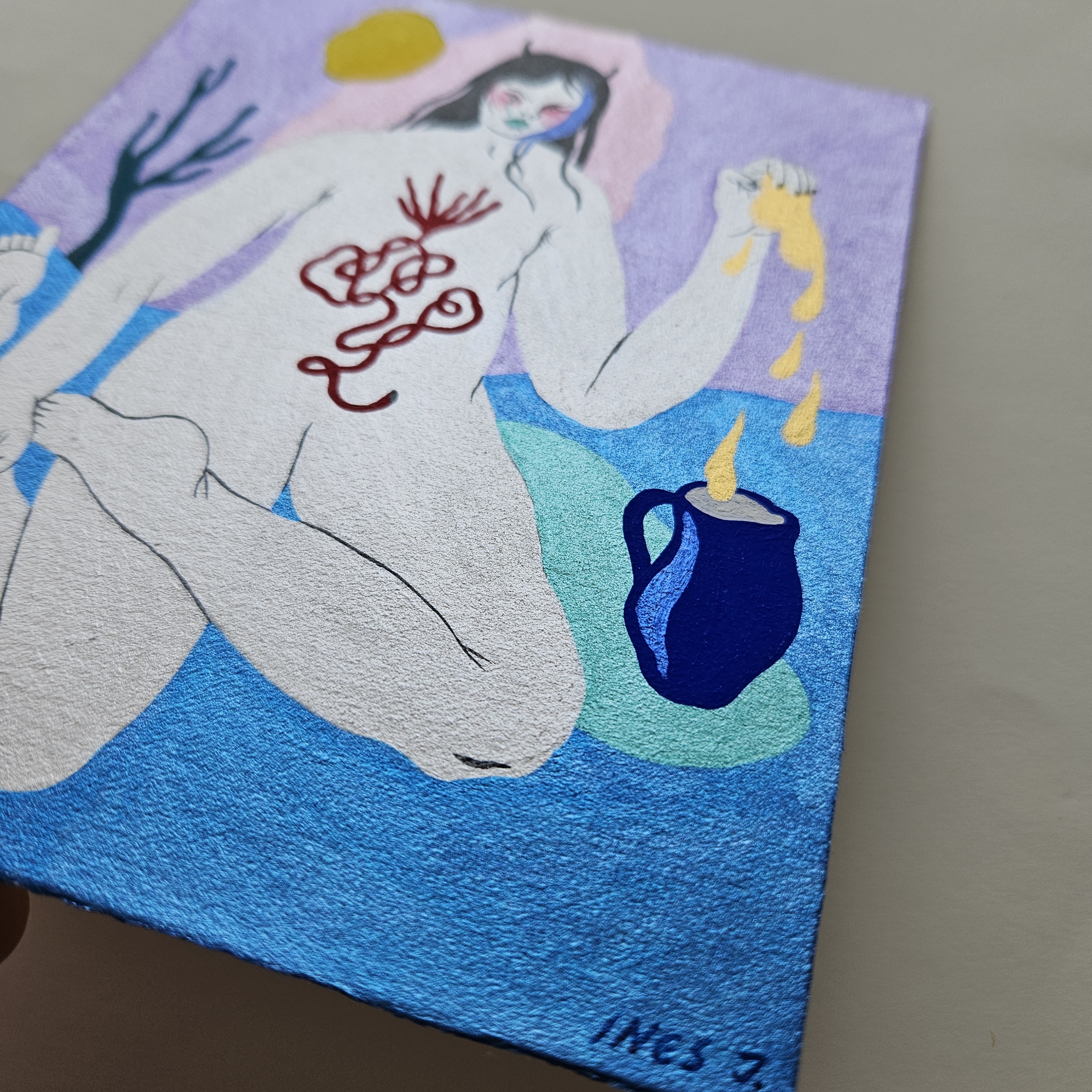 Original artwork done with acrylic gouache and pearlescent acrylic ink on 300 gsm cotton paper.